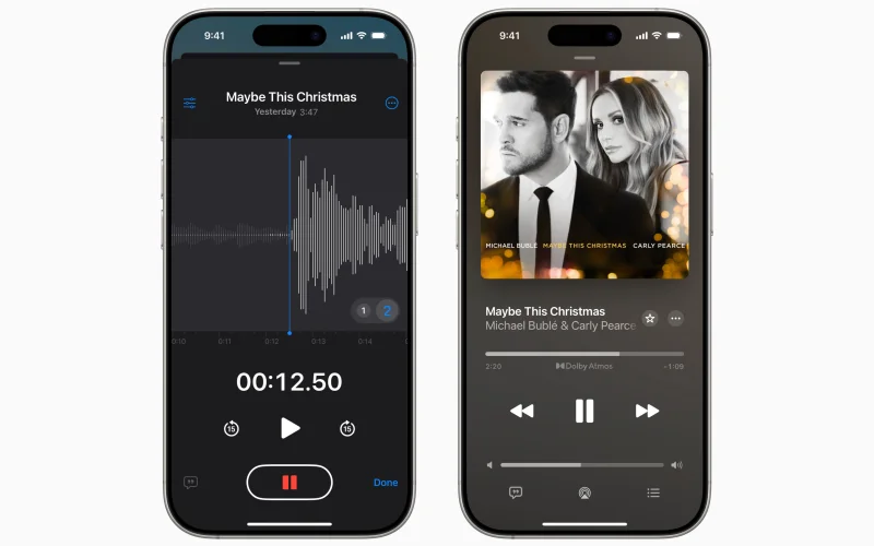 Tre vincitori di un GRAMMY Award, il poliedrico artista multiplatino Michael Bublé, la star del country Carly Pearce e il produttore discografico Greg Wells, hanno utilizzato questa funzione per creare il brano "Maybe This Christmas", un’emozionante canzone natalizia che racconta il calore e la speranza tipici del periodo delle festività. Il trio ha collaborato per scrivere il brano, registrando le voci direttamente su iPhone 16 Pro grazie alla nuova funzione di Memo Vocali. In un video dietro le quinte, spiegano come la tecnologia di Apple abbia reso il processo creativo più accessibile e spontaneo, consentendo loro di lavorare ovunque si trovassero. "Maybe This Christmas" è disponibile su Apple Music in audio spaziale, offrendo un’esperienza sonora coinvolgente e unica.