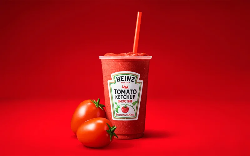 HEINZ Tomato Ketchup Smoothie rappresenta la prima bevanda al mondo che combina il celebre ketchup con ingredienti tradizionali degli smoothie. La ricetta include sorbetto all’açaí, succo di mela, fragole, lamponi e l’inconfondibile HEINZ Simply Ketchup, creando un sapore dolce-fruttato con note piccanti finali.